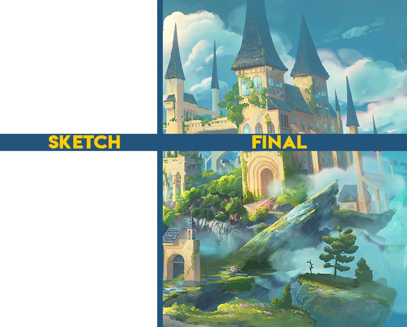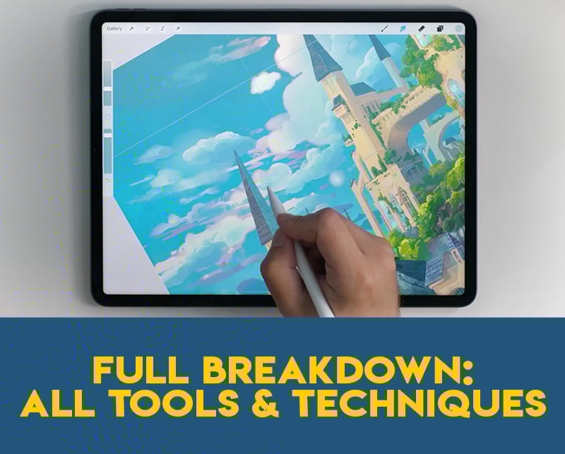 Painting an illustration in Procreate without LINE ART FULL BREAKDOWN of "Sky Garden Academy"